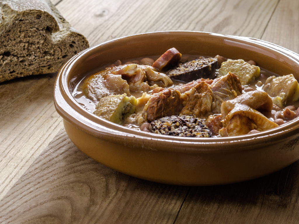 Este es un cocido típico de la zona de Burgos que se realiza con alubias rojas con carne y un relleno tradicional de la zona.