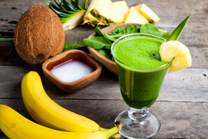 1) Primeramente hay que cortar la piña y el plátano en trozos pequeños y lavar bien las espinacas.