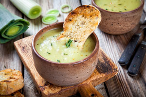 2) A continuación se añaden los puerros a trocitos, las zanahorias a rodajas finas y las patatas a trozos grandes y dejar esperar 20 minutos