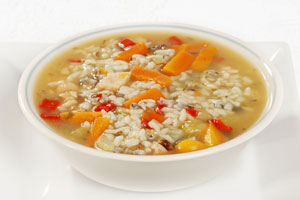 2) Cuando estén bien hechos se agrega el caldo de pollo, arroz y los cubos pequeños de tomate y deja hervir a fuego lento durante 35 minutos hasta que el arroz esté listo.