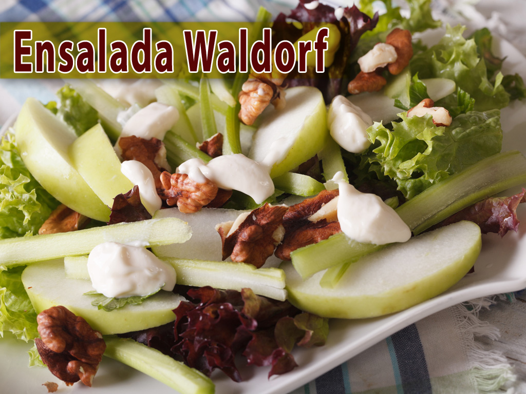 El origen de esta ensalada se remonta a finales del siglo XIX siendo su creador el maître del hotel Waldorf en Nueva York. Originalmente se hacía solo con manzana, apio y mahonesa, pero con el tiempo se han ido añadiendo más ingredientes. Es una receta muy sencilla y fácil de hacer y que tendrás lista en pocos minutos.