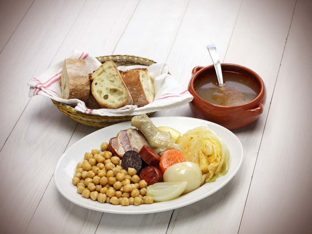 El cocido madrileño es uno de los platos más representativos de la cocina de Madrid, el origen del cocido es muy humilde y lo consumían sobre todo las clases más bajas de la sociedad. El garbanzo se introdujo en España entorno al siglo XII desde Cartago y posteriormente en la época medieval fue popularizado a través de recetas como los cocidos sefarditas, hasta llegar al actual cocido madrileño.