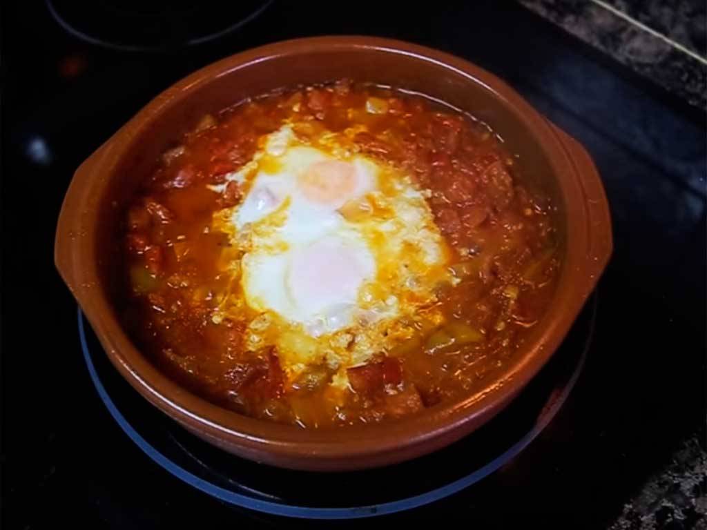 Este es un plato vegetariano está hecho a base de tomates con especias y huevos. Típico de Oriente Medio, que podría ser definido como plato nacional israelí