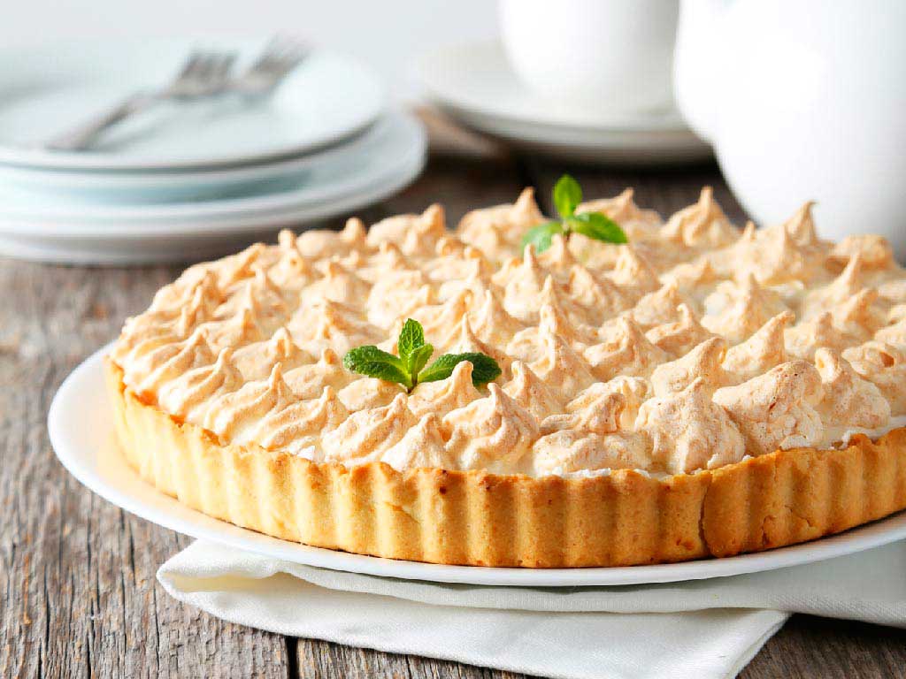 Hoy te presentamos una suave tarta de nueces, bajo una nube de merengue