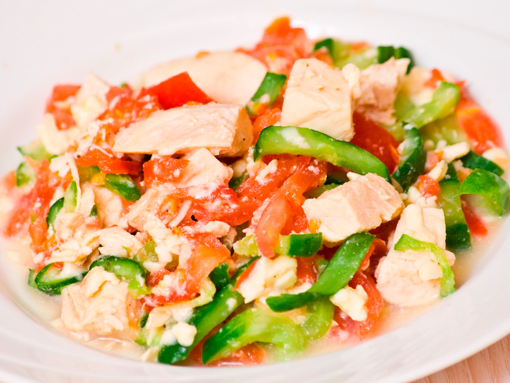 4) Pica las claras anteriormente separadas y añádelas al bol con los tomates.