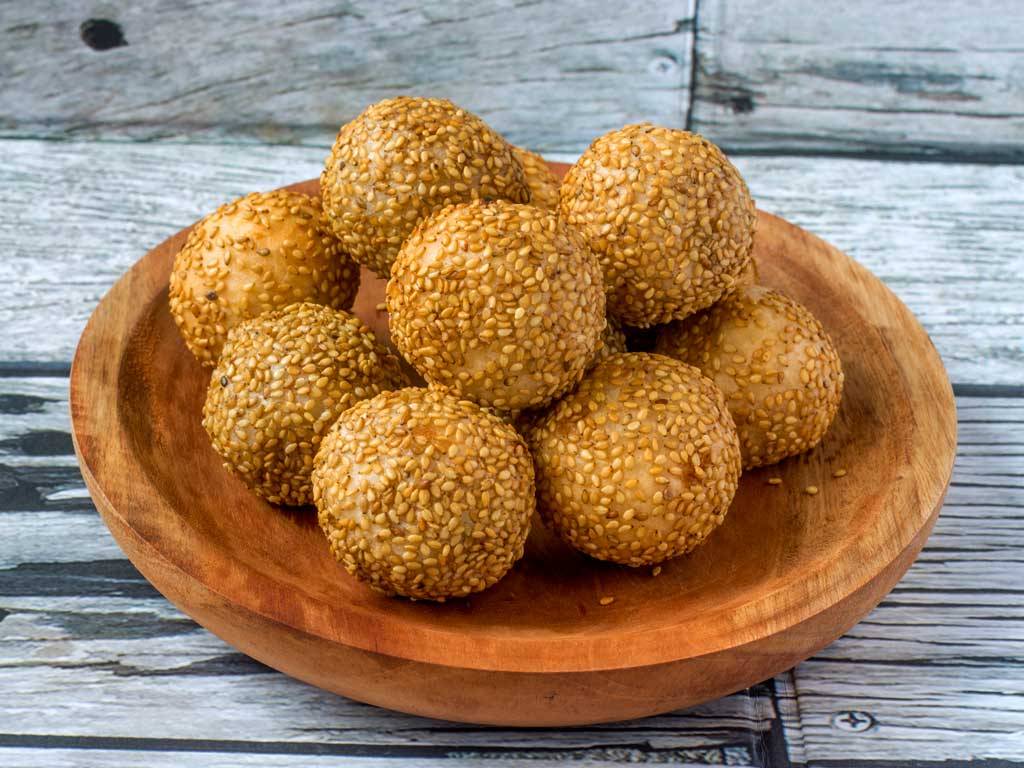 1) Ante todo cuela los bocconcini de mozzarella y sécalos con un papel absorbente, ahora rebózalos una primera vez en el pan rallado, ahora pásalos en los huevos que previamente abras batido, luego rebózalos en las semillas de sésamo.
