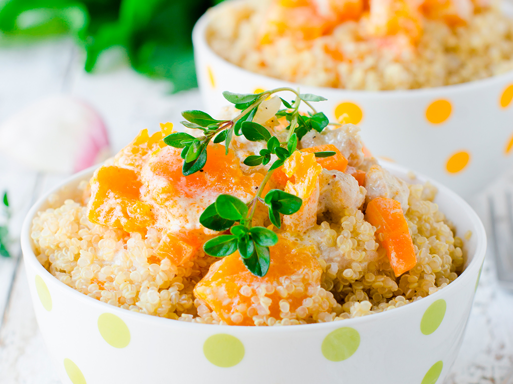 La calabaza es uno de los productos estrella de otoño y aporta múltiples nutrientes y la quinoa es uno de los llamados superalimentos rico en proteínas, vitaminas y minerales.