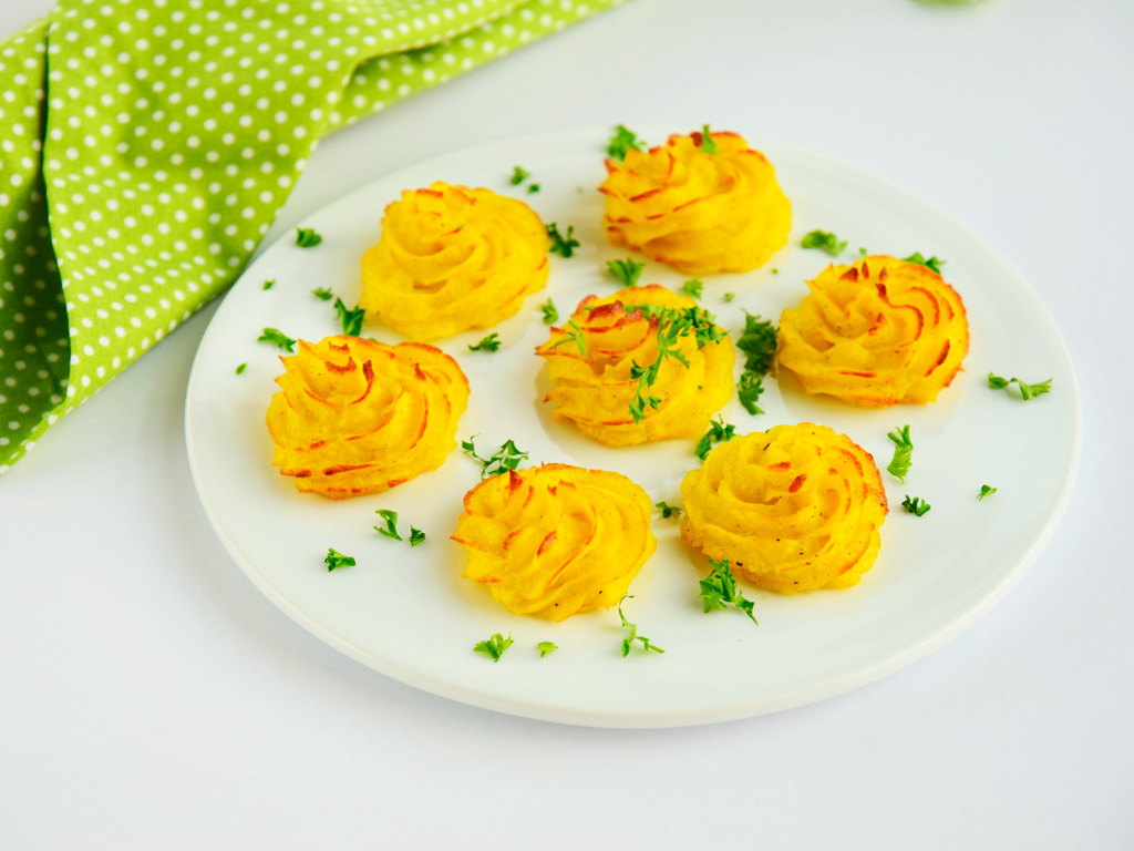 Es un acompañamiento ideal para pescados en salsa, carnes o bien como aperitivo. Son la mar de resultonas y muy fáciles de hacer ya no tenemos que ser unos virtuosos con la manga pastelera.