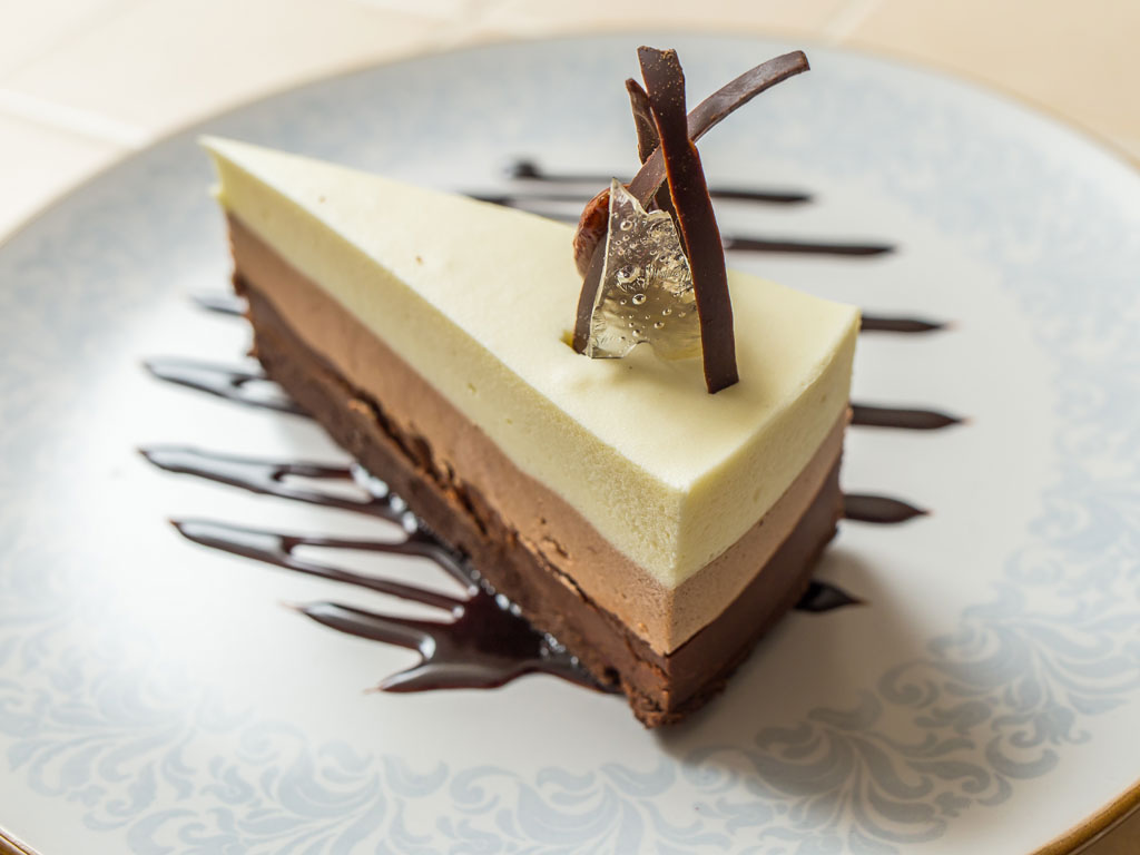 Luego, vierte la capa de chocolate con leche sobre la capa de chocolate negro con mucho cuidado (truco: Pon una cuchara boca a bajo en el centro de la tarta sin tocarla sujentándola con una mano, y con la otra deja caer la mezcla sobre ella de manera que no cae directamente sobre la otra capa, siempre toca primero la cuchara). Deja enfriar.
