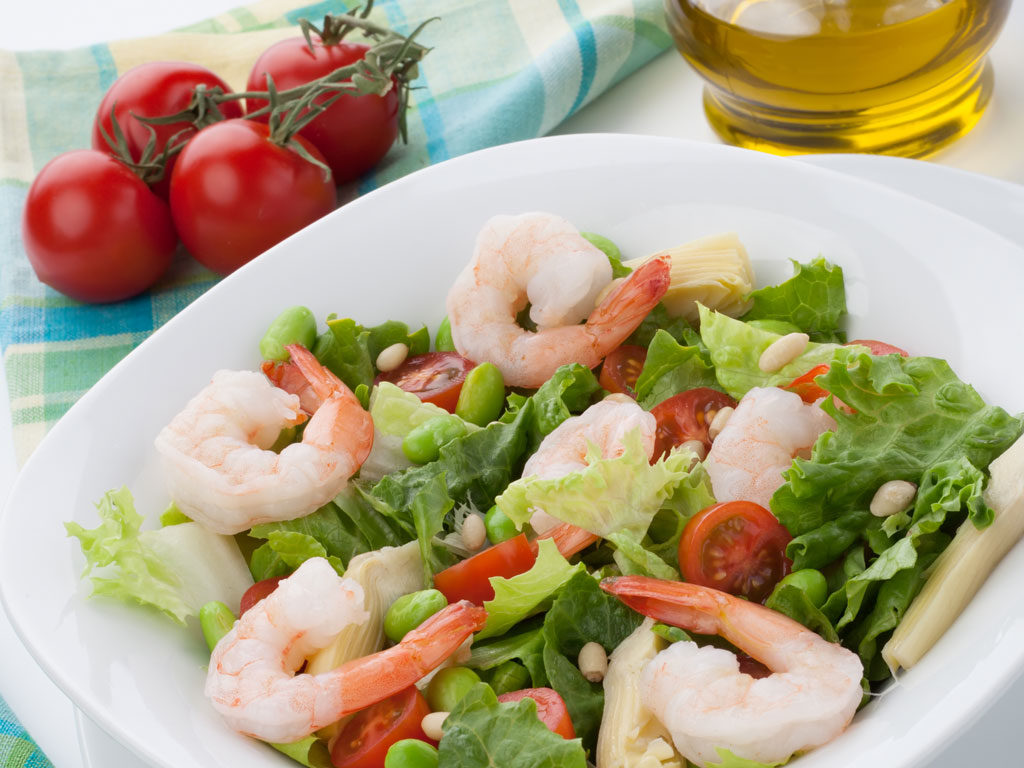 3) Mientras, en una sartén con un poco de aceite saltea, un ajo y las gambas, agrega una pizca de sal y pimienta y esperamos a que se hagan. A continuación, las repartimos por la ensalada.