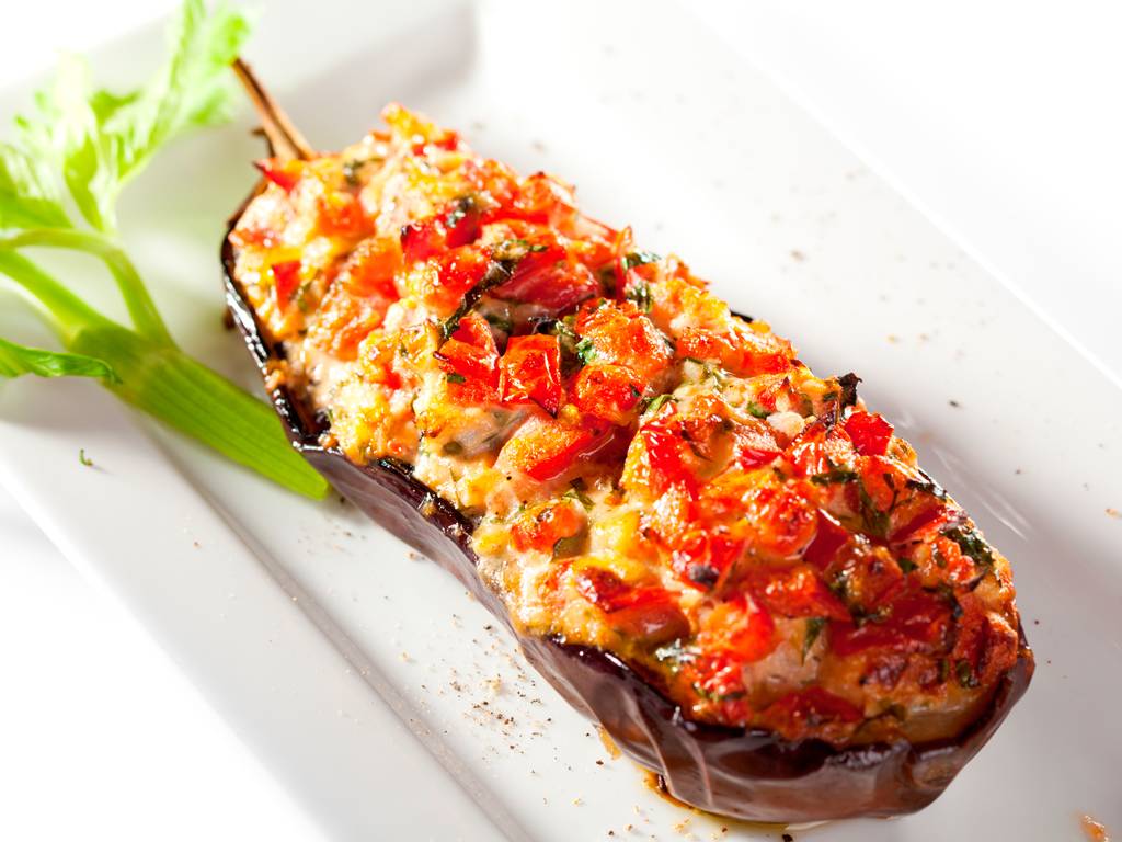 4) Rellenamos las berenjenas con la mezcla y cubrimos con un poco de bechamel. Espolvoreamos un poco de queso rallado por encima y gratinamos a 220º durante 5 minutos.