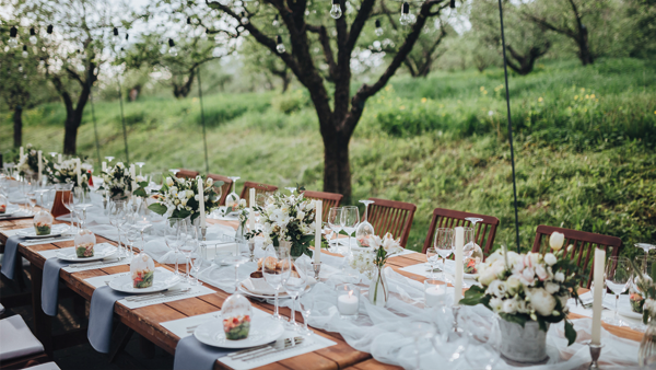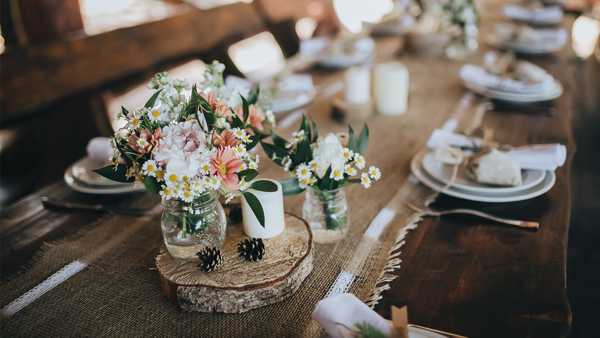 Como ya comentamos en el post todo lo ecológico está de moda en una sociedad que cada vez está más concienciada respecto al cuidado de lo natural y de lo que nos rodea, y en las bodas no iba a ser menos. La tendencia actual es la de utilizar una decoración floral o con plantas de hoja verde de acuerdo a la temporada para tus mesas, con un menú ecológico de producto de kilómetro cero, y que todo ello concuerde con el estilo del banquete: mesas de madera, sillas de forja, banderines, guirnaldas, velas, luces que iluminen el coctel, y no olvides un seating plan especial con el que impresionar a los invitados, una idea que te damos es marcar las mesas con trozos de madera pintadas con los números de cada una.