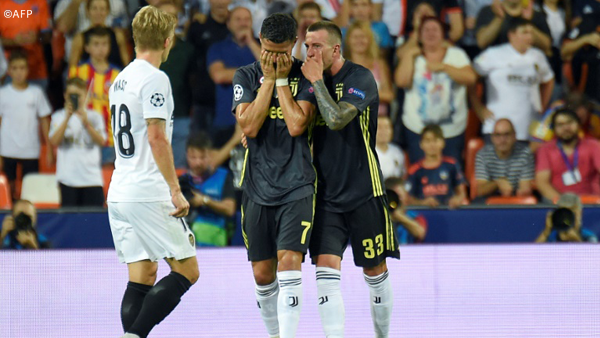 Valencia (España) (AFP) - El astro portugués de la Juventus de Turín Cristiano Ronaldo, flamante fichaje del club piamontés en el último 'mercato', vio la roja directa en su primer partido de Liga de Campeones con la Vecchia Signora, este miércoles ante el Valencia en su vuelta a España.Ronaldo tuvo un encontronazo en el área del Valencia con el colombiano Jeison Murillo, al que dio un leve golpe en el pie y otro en la cabeza cuando discurría el minuto 30 de la primera parte.El cinco veces ganador del Balón de Oro reaccionó a su expulsión con airadas protestas y abandonó llorando el terreno de juego.