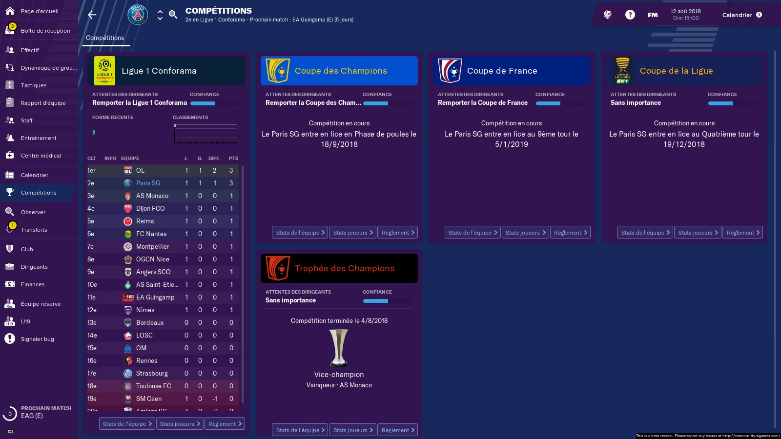 Sur les anciens opus, la prise en main du jeu était parfois complexe et longue. Dans FM19, celle-ci a été simplifié, vous êtes maintenant guidés à travers les différents modules de jeu (Effectifs, tactiques, staff, entrainements, transferts, finances…) et tout y est expliqué pas à pas.