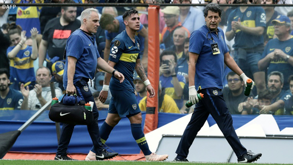 El atacante debió ser reemplazado a los 27 minutos de juego del partido de ida del superclásico argentino disputado el domingo pasado en la mítica Bombonera, el estadio de Boca, al sufrir una fuerte molestia muscular en la pierna izquierda.