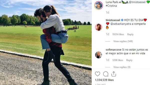De la misma forma, el astro del pop latino, quien hace solo un año lanzaba junto al español David Bisbal el exitoso sencillo 'A partir de hoy', sugería en la mañana inmediatamente anterior a su recital que la guapa argentina jugaría un papel determinante en su gran noche y no simplemente en el plano estrictamente musical. "¡Caminando hacia el Luna Park con @tinistoessel!", escribía el intérprete en la misma plataforma, y junto al emoticono de un corazón verde, para describir una llamativa imagen en la que aparecía cargando a su novia en su espalda mientras ambos recorrían el parque.