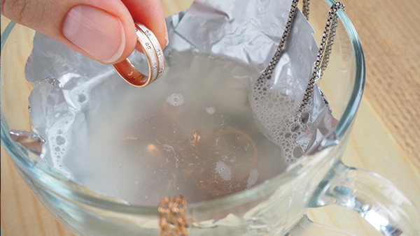 - Sal y papel de aluminio: Llena un recipiente con agua caliente y añade una cucharada de sal. Mueve hasta que se disuelva. Coloca un trozo de papel de aluminio en el fondo del recipiente e introduce la joya de plata. Espera unos 10 minutos. Sácala y enjuaga con agua tibia. Seca con un paño suave y limpio.
