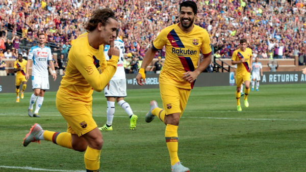 Ann Arbor (Estados Unidos) (AFP) - Barcelona, sin su estrella Lionel Messi, goleó este sábado 4-0 al italiano Nápoles con un doblete del delantero uruguayo Luis Suárez en partido amistoso jugado en el Michigan Stadium Estados Unidos, de preparación para las ligas europeas.En el partido de ida el Barça había derrotado por 2-1 al conjunto italiano en Miami.Los goles del campeón de la liga española fueron marcados por Suárez (48 y 58 minutos), y los franceses Antoine Griezmann (56) y Ousmane Dembelé (63).Todo ocurrió en el segundo tiempo, cuando el Barça se sacudió la modorra y al minuto 48 el 'Pistolero' Suárez abrió el marcador con un remate desde el centro del área que el arquero Alex Mert no pudo detener.Siete minutos después fue el delantero Griezmann quien puso el segundo gol del Barça con un remate desde el centro del área.Apenas dos minutos más tarde, Suárez extendió la fiesta al marcar un cañonazo tras un pase del francés Dembelé.El propio Dembelé fue el autor del cuarto gol con un zapatazo desde el centro del área tras un pase del holandés Frenkie de Jong.Messi se quedó en Barcelona para recuperarse de una lesión de primer grado en el sóleo.Además del encuentro de hoy, en los últimos seis partidos de preparación el Barça se ha impuesto al Nápoles (2-1), al Arsenal (2-1) y al Vissel Kobe (2-0), empató 2-2 con el Eibar y cayó ante Chelsea y Valencia (ambos 2-1).Por su parte, el Nápoles llevaba cuatro victorias en seis partidos con triunfos sobre Liverpool (3-0), Inter (4-1), SPAL (2-1) y Cagliari (2-1), y dos derrotas, una por 3-2 ante Bolonia y 2-1 frente al Barça el miércoles pasado.