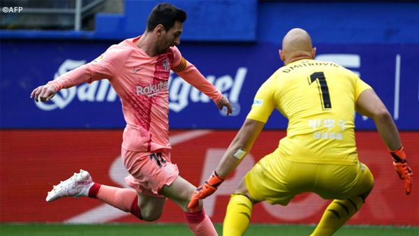 Madrid (AFP) - El Barcelona, campeón matemáticamente desde finales del pasado mes, cerró la 38ª jornada y con ello la Liga española 2018-2019 con un empate 2-2 en Eibar (12º), en un partido en el que marcó un doblete Lionel Messi, que dio un paso importante hacia la Bota de Oro.Con un total de 36 tantos al término del campeonato español, Messi aventaja en cuatro al hombre que puede privarle de la consideración honorífica de mejor goleador del continente, Kylian Mbappé (París Saint-Germain), que firmó otro doblete el sábado, en su caso ante el Dijon (4-0), para sumar 32.A Mbappé, que acaba de cumplir una suspensión de tres partidos, y al PSG le queda un partido, el de la última jornada de la Ligue 1, el viernes en Reims. Allí, el joven astro francés necesita una gran exhibición si quiere arrebatar el trofeo al argentino.Messi tiene por lo tanto muy cerca poder sumar una sexta Bota de Oro -un récord-, que sería la tercera de manera consecutiva.En el Trofeo Pichichi, que reconoce al máximo goleador de la Liga española, Messi sumó este domingo su sexto título, igualando en lo alto del palmarés con el mítico Telmo Zarra.En el partido de este domingo en Eibar, el equipo vasco se había adelantado en el minuto 20 por medio de Marc Cucurella, antes de que Messi remontara con dos goles seguidos.El primero del argentino (minuto 31) fue con un tiro cruzado en el área, con poco ángulo, tras ser asistido por el chileno Arturo Vidal.Un minuto después (32), Messi puso el segundo de su cuenta particular, recibiendo de Ivan Rakitic para quedar mano a mano con el arquero serbio Marko Dmitrovic, al que batió con un pequeño globo.Pero no fue suficiente para la victoria del Barça, ya que el también argentino Pablo De Blasis (45) puso el 2-2 definitivo para el Eibar.