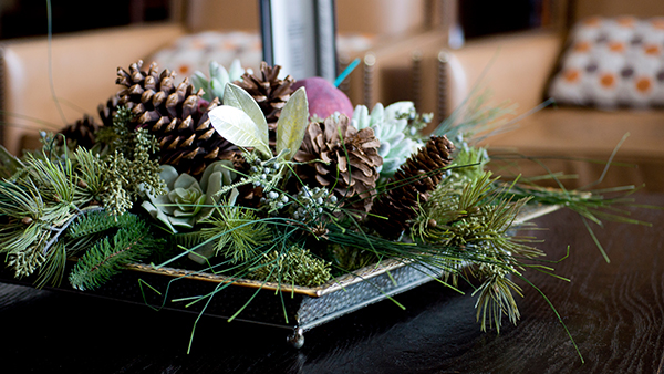 Puedes elegir las flores y plantas que más te gusten para ponerlas en el centro de mesa, pero te recomendamos que sean hojas de un color verde intenso y que añadas rosas, flores de pascua o alguna otra que tenga color rojo, lo más navideño posible. Las mejores ramas son las de pino, muérdago o acebo… ¡Y no te olvides de incluir alguna piña, velas o alguna guirnalda de luces!