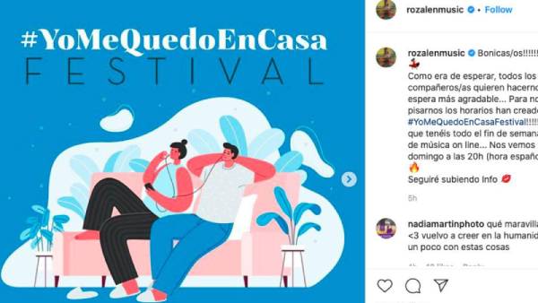Así, este viernes ha nacido oficialmente un nuevo festival llamado #YoMeQuedoEnCasa que, echando mano de la etiqueta que circula por las redes sociales para animar a los ciudadanos a confinarse en sus hogares y evitar así la difusión masiva de la enfermedad, se materializará a lo largo de los próximos días con conciertos "cien por cien digitales", a los que solo se puede acceder por internet.