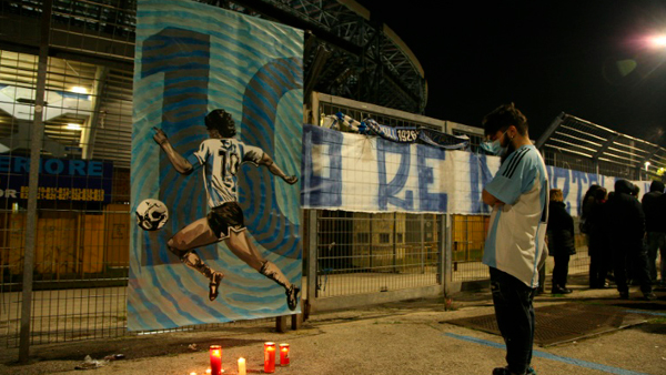 Nápoles (Italia) (AFP) - En Nápoles, la noticia de la muerte de Diego Maradona causó un profundo pesar: en esta ciudad italiana el 'Pelusa' es todo un ídolo y la gran leyenda de su club, al que ayudó a hacer campeón del 'Calcio' en dos ocasiones, en 1987 y 1990.Son los únicos títulos nacionales del club, que no ha olvidado a su mito.Tampoco la ciudad y sus alrededores, donde la imagen de Maradona está muy presente, incluso decorando edificios."Siento que representé a una parte de Italia que no contaba para nada", dijo el astro albiceleste en el documental de 2019 que Asif Kapadia le dedicó, para referirse a su estancia en Nápoles.El carácter de 'chico de barrio' de Maradona se amoldaba a la perfección a la idiosincrasia de los 'tifosi' del Nápoles.Con ese equipo ganó en 1987 el primer título liguero de la historia del club, apenas un año después de alcanzar la gloria con Argentina en el Mundial de México-1986.