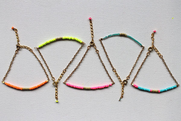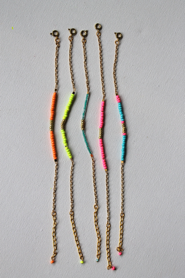 Dans ce tutoriel, vous apprendrez à fabriquer un bracelet en chaîne fine avec de minuscules perles. Nous avons utilisé des blocs de couleurs vives mélangés à un peu d'or, mais vous pouvez les réaliser dans la couleur de votre choix. Ils font aussi d'excellents cadeaux pour les amis et la famille.