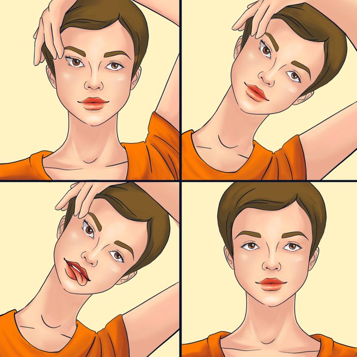4. Remettez la langue dans la bouche, relâchez vos muscles et revenez à la position de départ. Répétez les mêmes manipulations de l'autre côté de la tête.