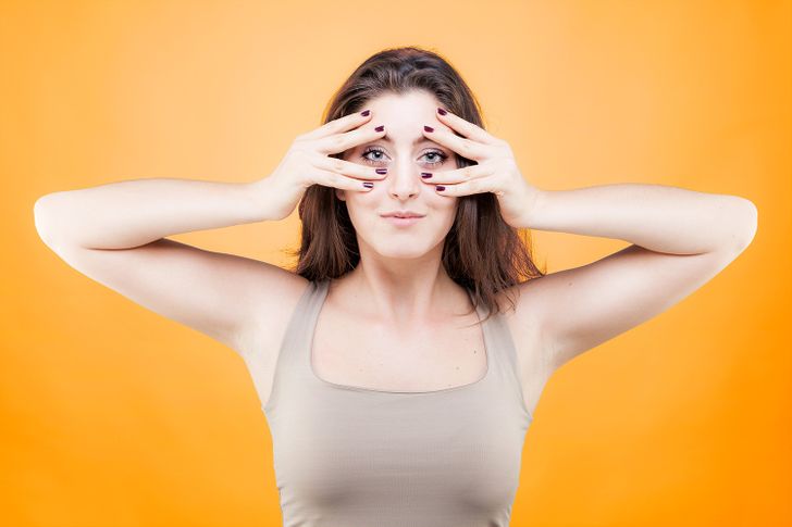 Abaissez vos paupières, fermez les yeux et restez dans cette position pendant 10 secondes, puis mettez vos mains sur votre front, appuyez légèrement et essayez de bouger vos globes oculaires dans le sens des aiguilles d'une montre. Cet exercice pourrait vous aider à vous débarrasser des rides autour des yeux et du nez.