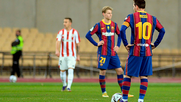 El conjunto de Ronald Koeman había vuelto a sonreír tras un irregular inicio de temporada, encadenando cuatro victorias oficiales desde inicio de año.Séptimo en LaLiga al comenzar 2021, el Barça subió hasta su actual tercera posición, a un paso de Real Madrid y del líder, el Atlético de Madrid.Messi también parecía volvía a ser feliz sobre el campo encadenando dos dobletes frente a Athletic de Bilbao y Granada en el campeonato español en sus dos últimos encuentros ligueros, pero la Supercopa de España y su expulsión en la final, podrían poner un freno a esta progresión.