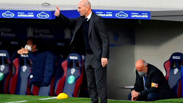 Zidane también elogió a su central francés Raphael Varane, que en ausencia de Ramos, se convirtió en el referente defensivo el sábado ante el Huesca y marcó el doblete de la victoria 2-1."Me alegré mucho por él, de que el viento soplara a su favor porque se merece que sea así, y de que marcara esos dos goles, no sólo por él sino también por el equipo", dijo Zidane."Estar 1-0 y tener carácter para volver al partido, marcar dos goles y ganar el partido, nos ha hecho mucho bien y a él también", concluyó.