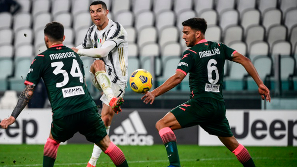- El nuevo 'capocannoniere' -El Crotone saltó este lunes al terreno de juego sin complejos, buscando los contragolpes.El equipo de Pirlo tuvo que ser paciente para encontrar un hueco en el muro calabrés.Cerca del descanso, Ronaldo lo conseguía mandando a las redes, de cabeza, un buen centro del lateral brasileño Alex Sandro (38).Poco después (45+1), el exjugador del Real Madrid chutó fuerte desde fuera del área.