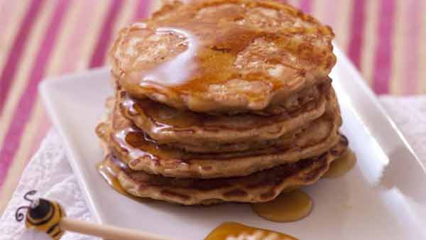 Lorsque la poêle est bien chaude, versez une louche de pâte à pancakes aux flocons d’avoine. Cuire 2 à 3 min jusqu’à ce que de petites bulles se forment à la surface du pancake.