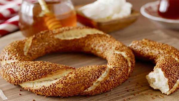 Former un anneau que l’on trempe dans le miel dilué avec de l’eau puis que l’on enrobe de sésame.