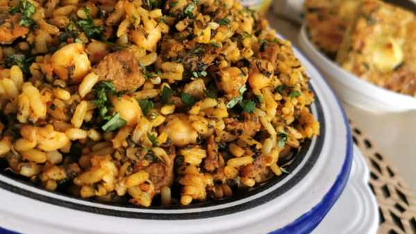 -Mélanger le riz avec la viande et les légumes