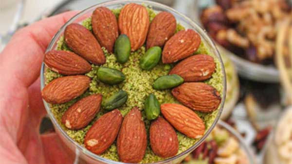 Retirer du feu et verser dans les bols et décorer avec les fruits secs