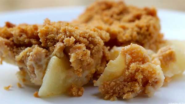 Enfournez et faites cuire le crumble aux poires pendant 45 minutes jusqu’à temps que la pâte sableuse soit bien dorée.