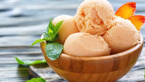 Lorsque le sorbet commence à prendre, vous pouvez ajouter quelques petits dés de pêche fraîche et poursuivre le turbinage pour obtenir un sorbet onctueux.