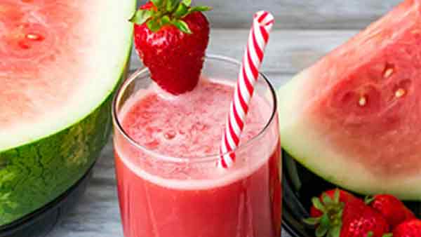 Couper la pastèque en morceaux et équeuter les fraises.