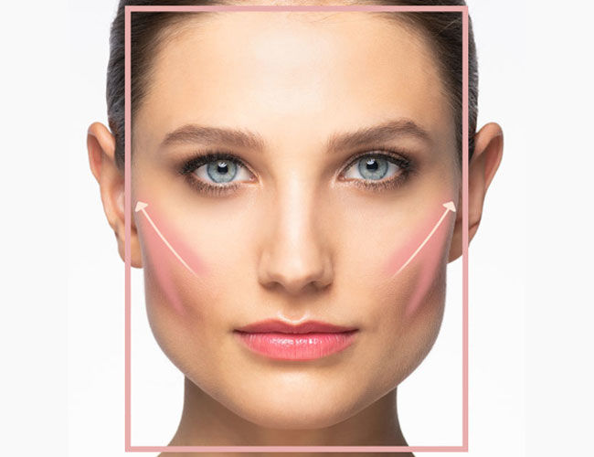 Pour tirer le meilleur parti d'un visage ovale, appliquez le fard à joues sur vos pommettes dans un mouvement quasi horizontal.