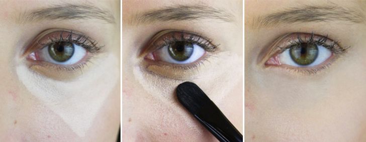 Si la correction des couleurs n'est pas suffisante pour éliminer ces cernes, vous pouvez essayer d'appliquer des sachets de thé mouillés sur la zone sous les yeux. Ensuite, masquez le reste avec un correcteur. Appliquez le correcteur non pas en forme de demi-cercle sous les yeux, mais en forme de triangle inversé.