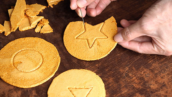 Son unas galletas en las que se ve diferentes formas, por ejemplo: un corazón, una estrella o un paraguas y que los participantes del juego deben conseguir sin romper la figura que ven.