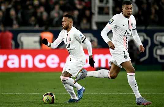 Neymar (I) y Kylian Mbappé, guiaron al PSG a la victoria 3-2 sobre Burdeos, en partido de la liga italiana jugado el 6 de noviembre de 2021 en Burdeos.