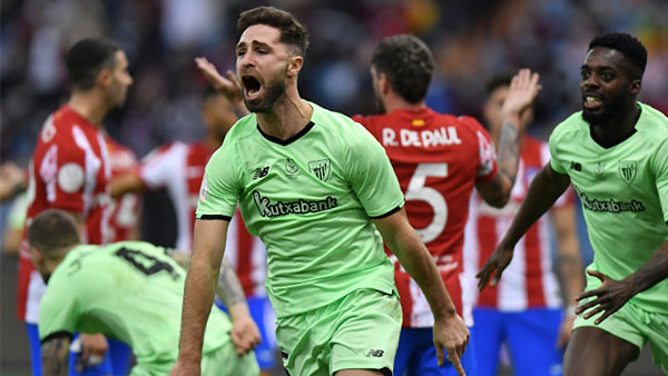 Un tanto en propia puerta del portero del Athletic Unai Simón (62) adelantó al Atlético, pero Yeray Álvarez igualó de cabeza (77) y Nico Williams puso el 2-1 (81), que permitirá al Athletic defender su corona."Es un honor para nosotros defender nuestro título", dijo tras el partido el técnico del equipo vasco, Marcelino García Toral.
