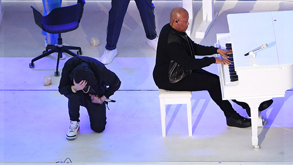 Eminem se arrodilla en el medio tiempo del Super Bowl LVI ¿Sabes por qué?