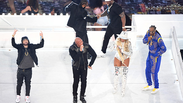 En el espectáculo del medio tiempo del Super Bowl LVI celebrado este fin de semana, por primera vez el escenario fue dominado por el ritmo del hip hop con los grandes como Dr. Dre, Snoop Dogg, Mary J Blige, Kendrick Lamar, 50 Cent y Eminem
