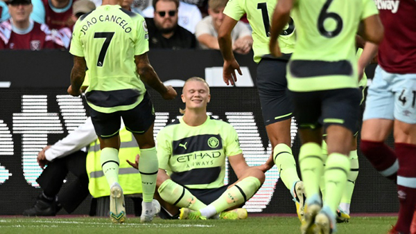 Erling Haaland se estrenó a lo grande en la Premier League, con un doblete para que el Manchester City ganara 2 a 0 en su visita al West Ham, este domingo en la 1ª jornada, en la que el Manchester United perdió 2-1 en casa ante el Brighton.