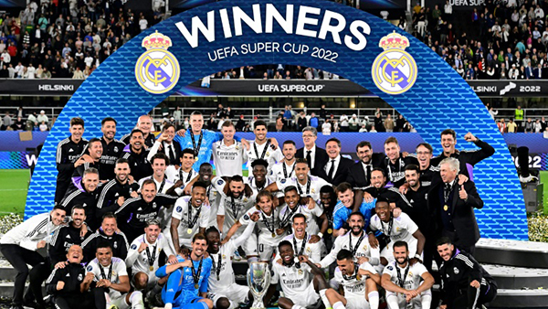 En el palmarés de la Supercopa de Europa, el Real Madrid consigue alcanzar en lo más alto, con sus cinco coronas (2002, 2014, 2016, 2017 y ahora 2022), al FC Barcelona y el AC Milan, y borra el mal sabor de su anterior participación en el torneo, hace cuatro años, cuando fue derrotado por el Atlético de Madrid en otra ciudad a orillas del Báltico, Tallín.