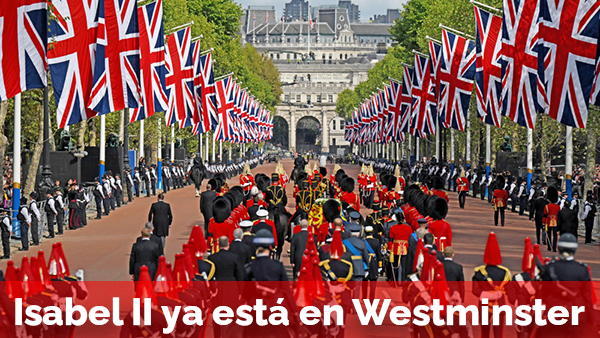 Uno de los momentos más emotivos se ha producido cuando el féretro ha pasado justo por delante de las estatuas de los padres de Isabel II, el rey Jorge VI y la Reina Madre, situadas en un lateral de la calle conocida como The Mall. En la retransmisión en directo que está realizando la BBC, parecía que estaban viendo pasar a su hija camino de lugar donde pasará cuatro días recibiendo las muestras de respeto de sus súbditos.