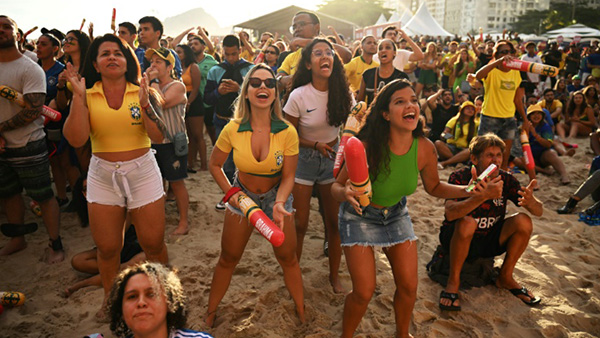 Con los dos goles del equipo dirigido por Tite, el primero de ellos a los 62 minutos, algunos brasileños como Milton de Souza, de 58 años, pasaron zozobra con la demora del primer gol. "Hay que tener paciencia, porque la Copa es la Copa", dijo a la AFP este jubilado de Pernambuco (noreste), que, de vacaciones en Rio, revolvía preocupado una caipirinha. De Souza, que vestía una camiseta polo verde y amarilla, cree que Brasil tiene "chances" de volver a ser campeón este año, pero no la copa asegurada. El primer tiempo tibio dio paso a una segunda mitad del partido de algarabía y fiesta en Copacabana, con fuegos artificiales y una alegría que el obrero Benildo Ferreira no podía disimular.